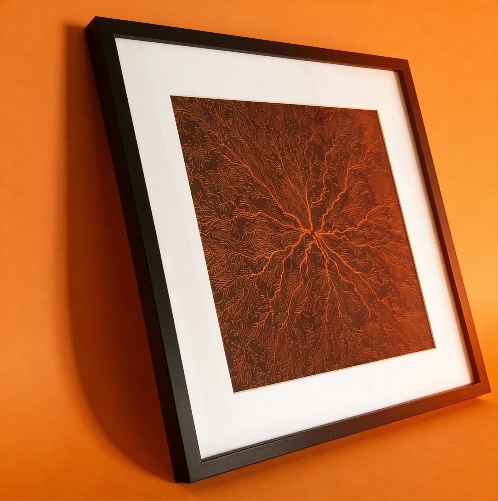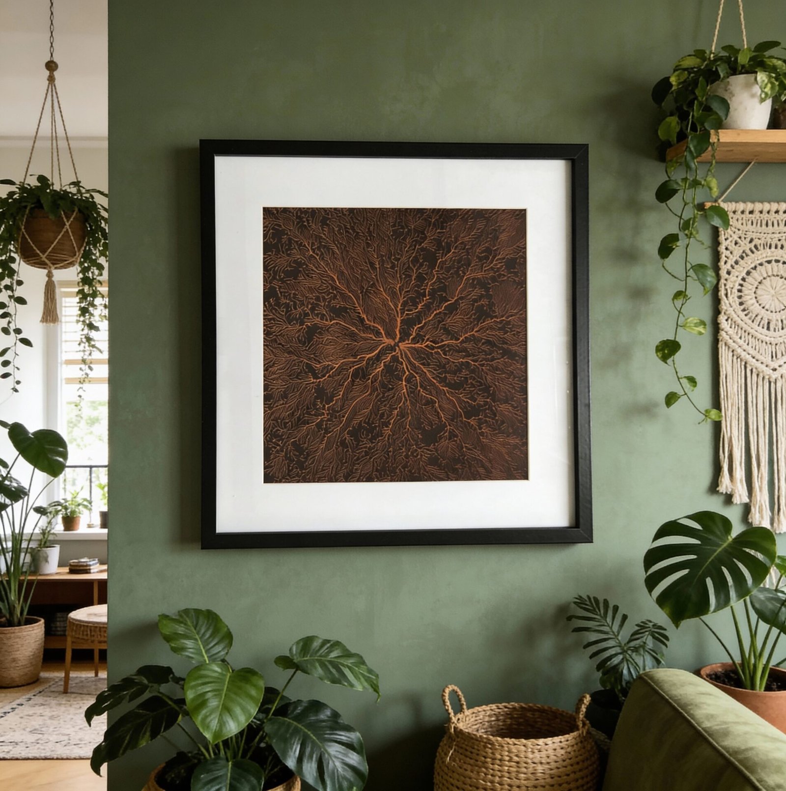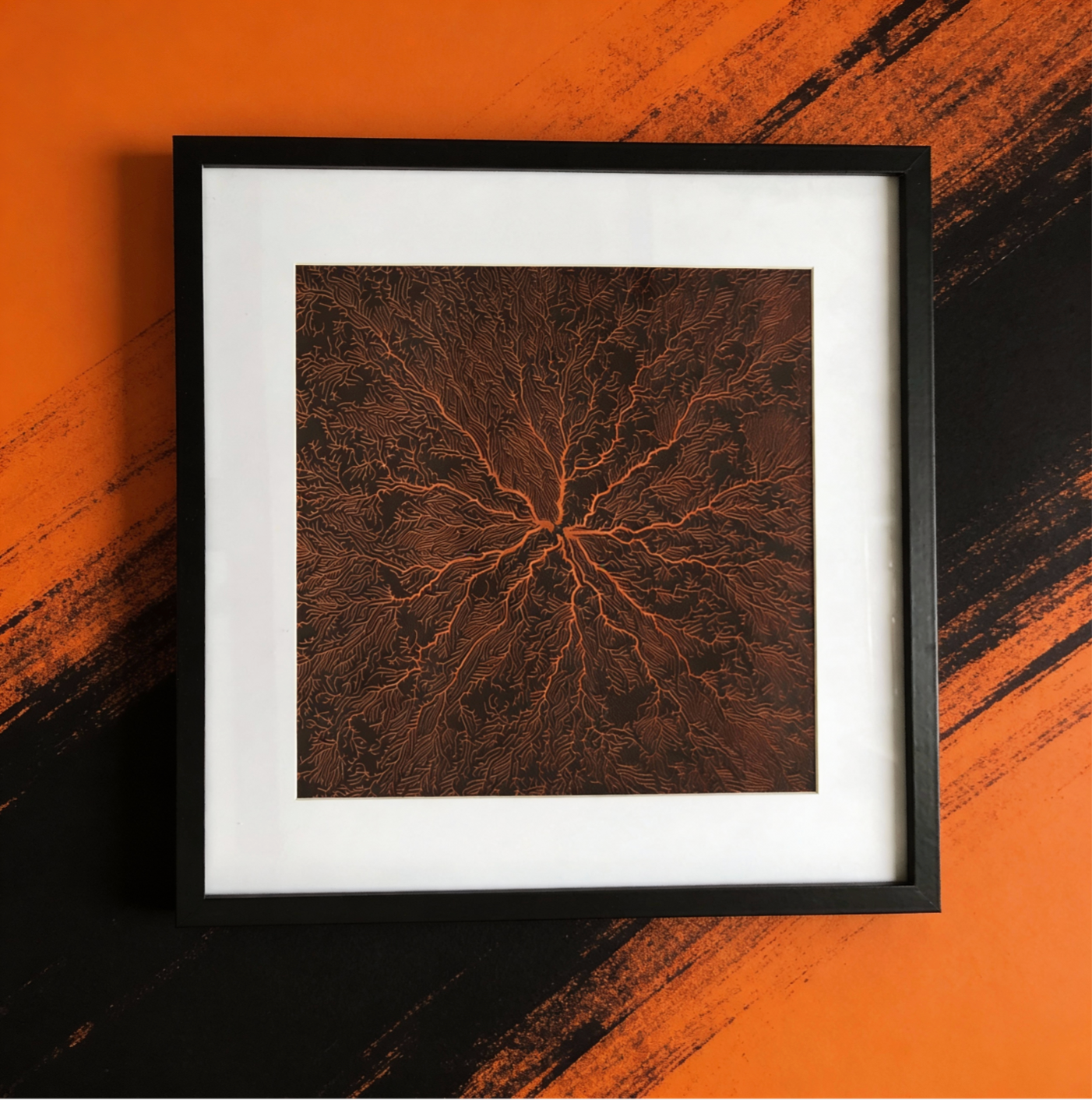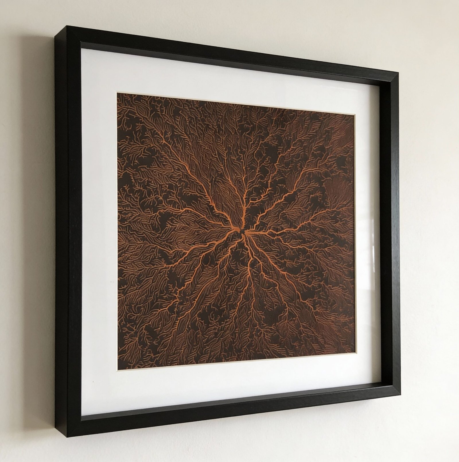 Encadrée avec soin dans un cadre noir avec passe-partout, cette œuvre devient une pièce décorative forte, idéale pour décorer les intérieurs au design naturel, ou encore les espaces professionnels de standing.