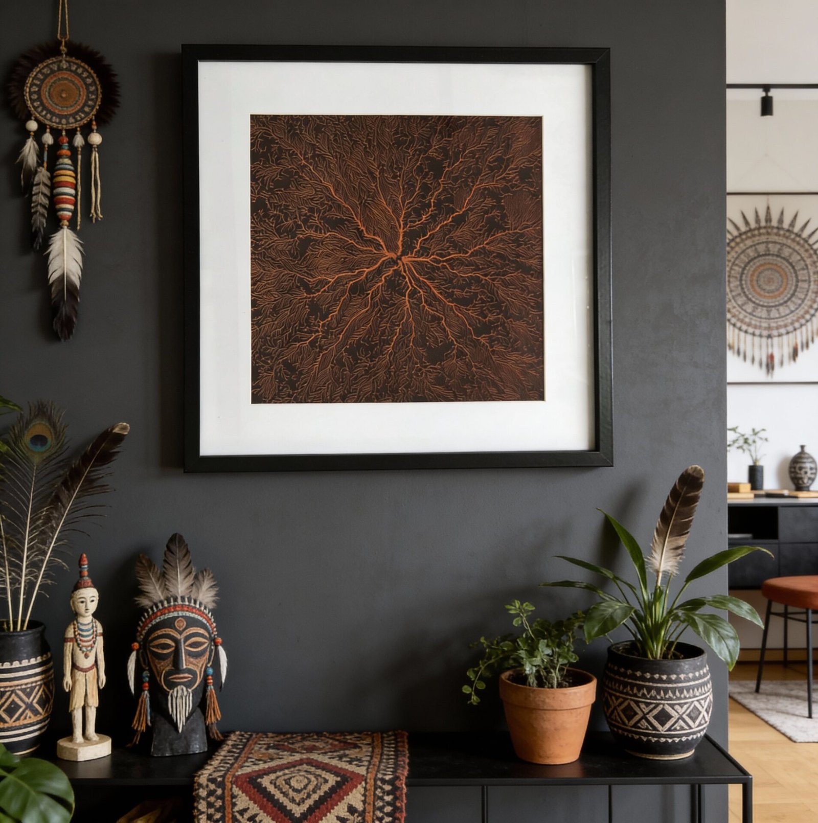Tableau en cuir gravé “Roots” – Décoration murale design et naturelle